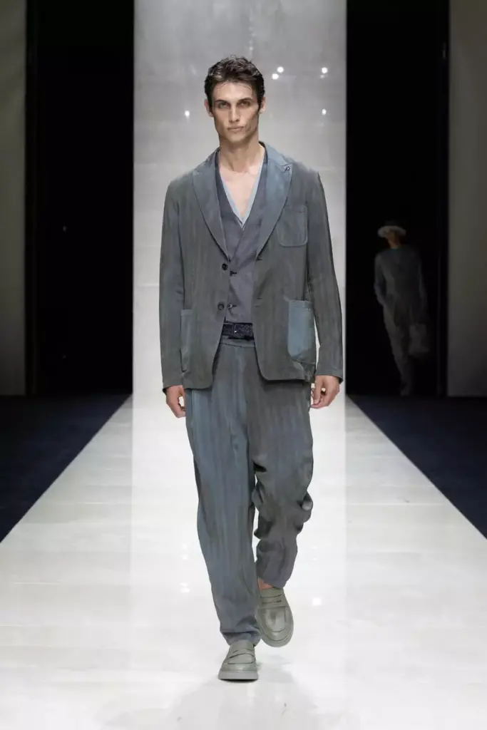 Il tempo lento della riflessione, colori calmi e forme morbide: la collezione Giorgio Armani primavera estate racconta un atteggiamento controcorrente rispetto alla fretta e alla violenta espressione dei tempi.