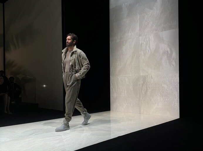 Alla fine della sfilata, Giorgio Armani ha salutato il pubblico insieme a Leo Dell’Orco, braccio destro e responsabile dell’ufficio stile uomo, e Gianluca Dell’Orco, a capo dell’ufficio stile Giorgio Armani, storico collaboratore, in azienda da trentacinque anni. Un’idea affettuosa per raccogliere l’applauso affettuoso. Come di consuetudine, come sempre.