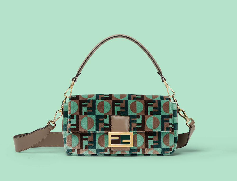 La collezione ruota attorno a tre modelli simbolo del brand: Baguette e Peekaboo, rilette attraverso un tessuto dall’effetto arazzo e impreziosite da un motivo grafico che fonde il celebre logo FF con un gioco di pois dal sapore rétro. Il risultato è una palette sofisticata ma vivace, capace di evocare tanto l’ironia parigina quanto la monumentalità romana.