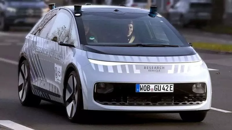 Dal punto di vista del design, il concept richiama il linguaggio stilistico della famiglia elettrica ID., reinterpretato in chiave più futuristica. La carrozzeria, caratterizzata da quattro porte – con quelle posteriori ad apertura contrapposta – sembra priva del montante centrale, una soluzione pensata per facilitare l’accesso all’abitacolo. Gli specchietti tradizionali lasciano spazio a telecamere integrate, mentre una serie di sensori e moduli ottici è distribuita lungo il perimetro del veicolo e nella parte superiore, a conferma della vocazione driverless del progetto. Le diciture “Research Vehicle” ben visibili ne ribadiscono la natura sperimentale.