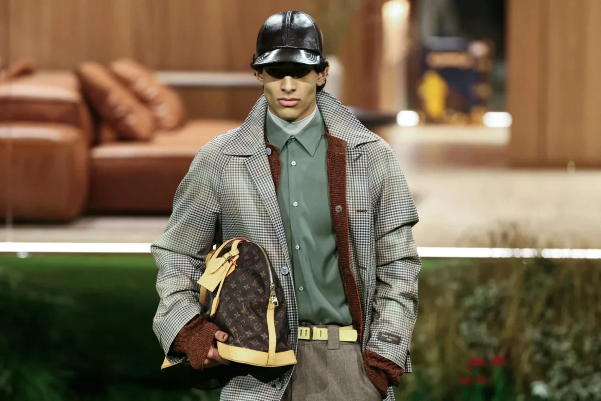 Accanto alla sartoria, riaffiora il linguaggio dello sportswear di lusso, cifra distintiva di Pharrell. Giacche in fleece, t-shirt in vicuña trattata, visone lavorato fino a sembrare spugna e piumini con il Monogram LV costruiscono un dialogo costante tra comfort e prestigio. L’intento dichiarato è quello di evocare l’intimità domestica – non a caso l’invito allo show era un paio di pantofole in pelle – anche se l’insieme, nel suo rigore concettuale, restituisce una sensazione di distacco emotivo. Le sperimentazioni tessili più sofisticate, come i filati con inserti in alluminio o i materiali termoregolanti e impermeabili in seta e chambray, restano volutamente discrete, quasi mimetizzate nella struttura dei capi.