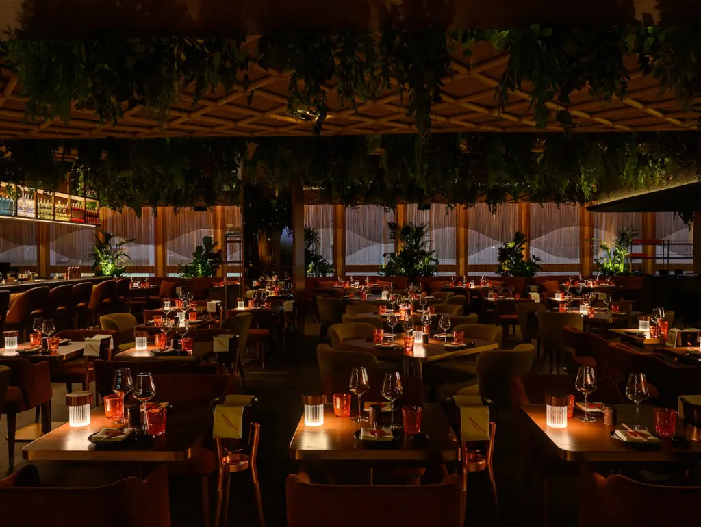 Dentro il ristorante la scenografia è parte della performance: la sala principale con soffitto in bambù, un sushi bar sempre animato, il cocktail bar scenografico e una private room per cene riservate convivono con una “Sambaroom” — spazio segreto dedicato all’after-dinner, pensato per DJ set, performance dal vivo e drink fino a tarda notte. L’idea è chiara: la cena è solo il prologo di una serata che vuole proseguire tra musica, luci e leggerezza.