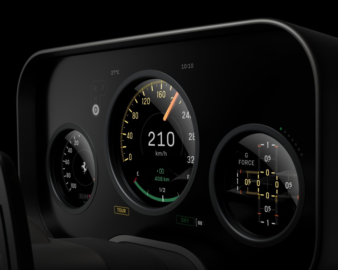 Il risultato è un’interazione intuitiva e fortemente tattile, pensata per ridurre il carico cognitivo del pilota e rafforzare il legame emotivo con la vettura. Il volante, ispirato ai modelli storici Ferrari e alle monoposto di Formula 1, reinterpreta il classico tre razze in chiave contemporanea: più leggero, essenziale, con comandi analogici progettati per offrire un feedback meccanico e sonoro accuratamente calibrato.
