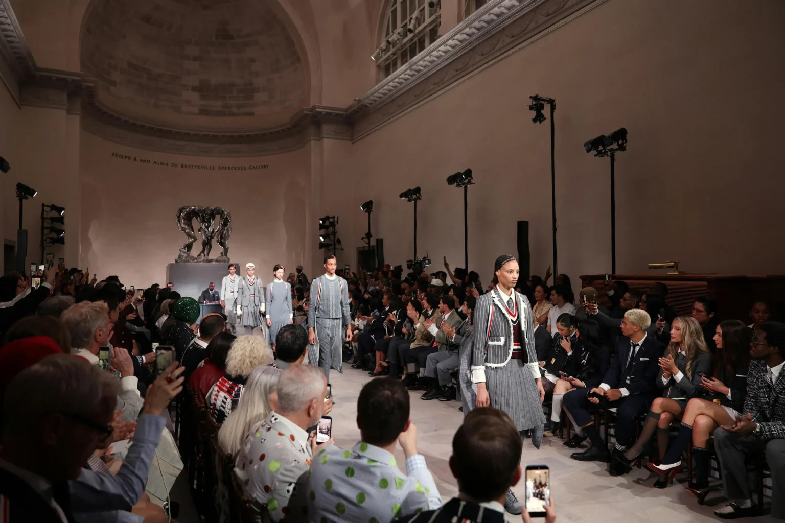 San Francisco diventa, per una sera, il nuovo centro della moda internazionale. Thom Browne sceglie di uscire dai circuiti tradizionali e presenta la sua collezione Autunno Inverno 2026 al Legion of Honor Museum, affacciato sulla baia, a pochi giorni dal Super Bowl. Una decisione simbolica e strategica che racconta molto della visione dello stilista: una moda americana capace di dialogare con l’arte, lo sport e la cultura contemporanea, oltre i confini canonici di New York e Parigi.
